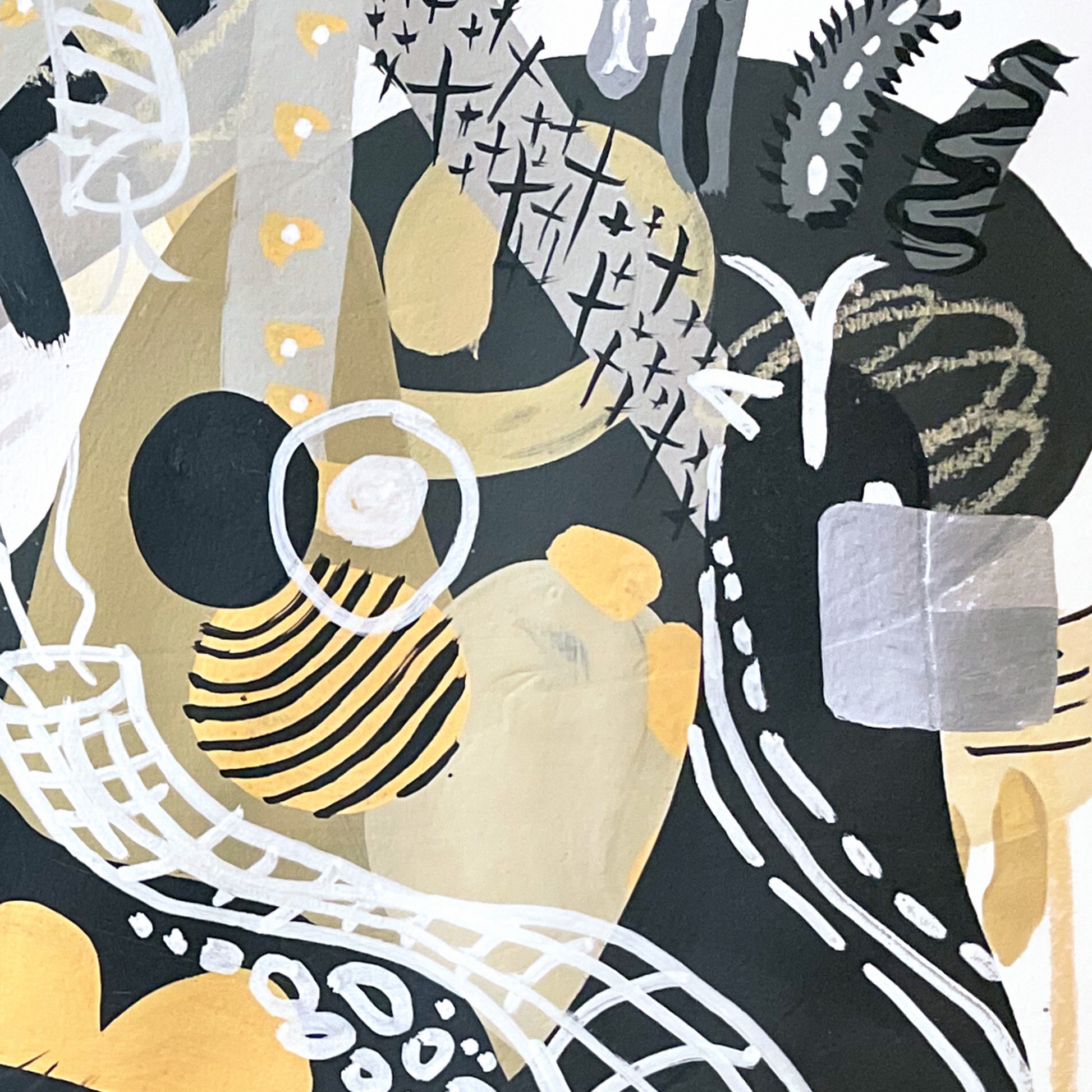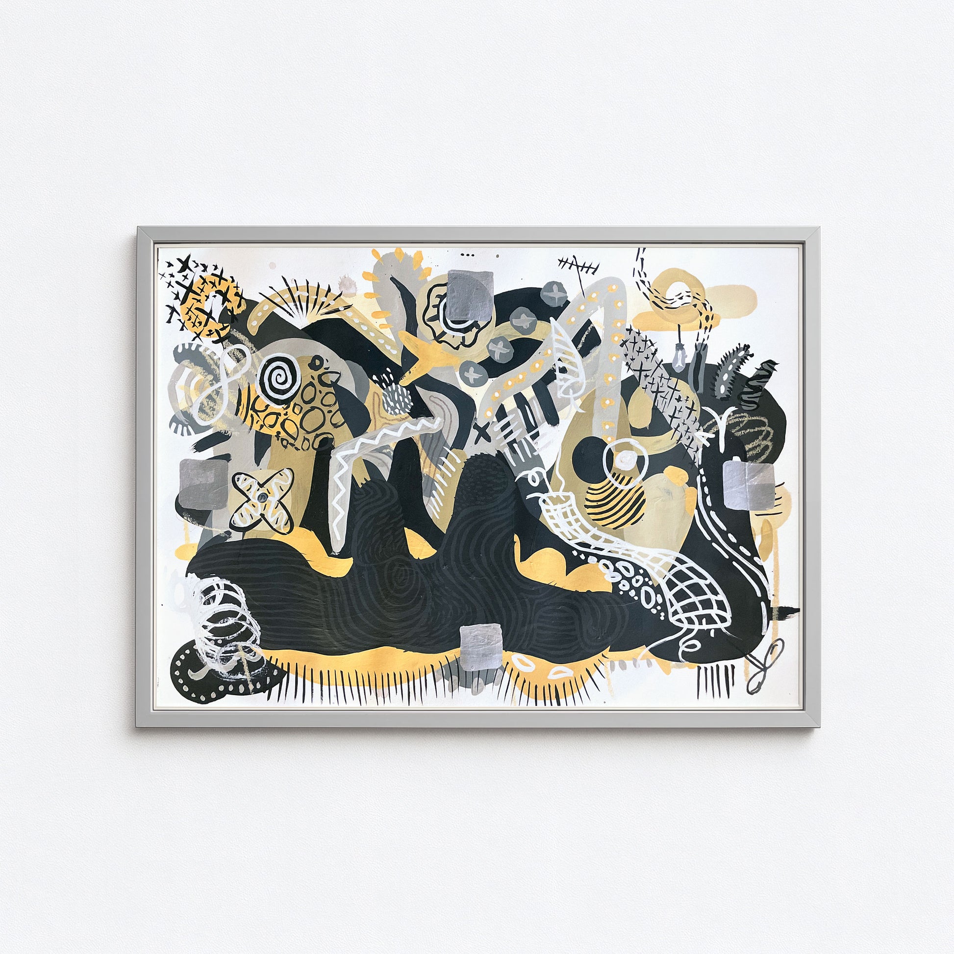 Using a palette of deep blacks, warm ochres, and soft metallics, this artwork pulses with motion, symbolism, and rhythm — like a visual map of thoughts you haven’t had yet. It's not just a painting; it’s a statement: stay curious, stay lost, stay creating.